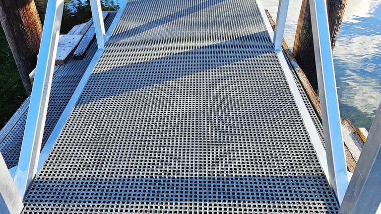 Durability: Superior durability when compared to Stainless Steel, Aluminum and Galvanised Grating, especially when exposed to highly corrosive environments such as ocean docks and marinas.